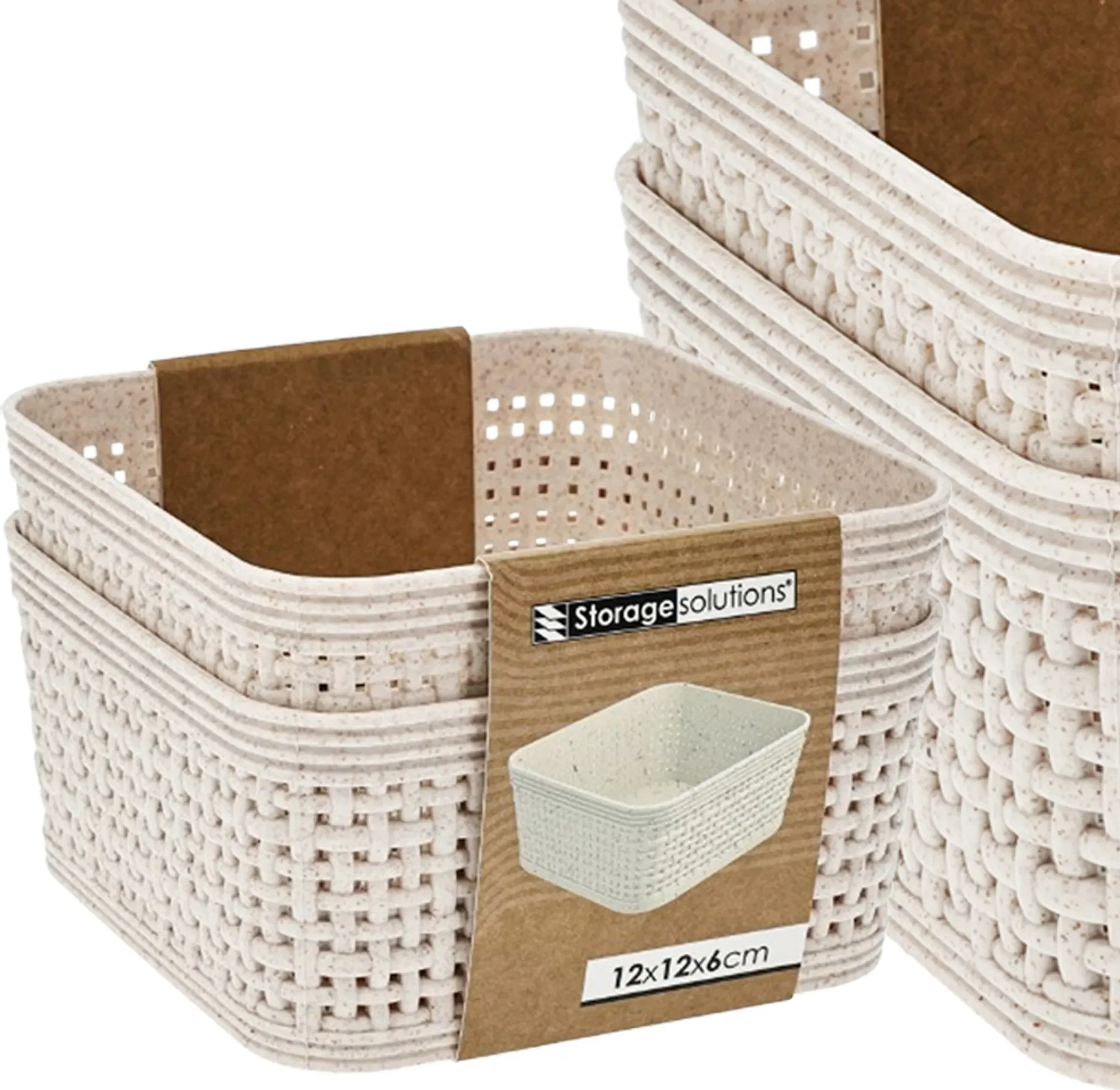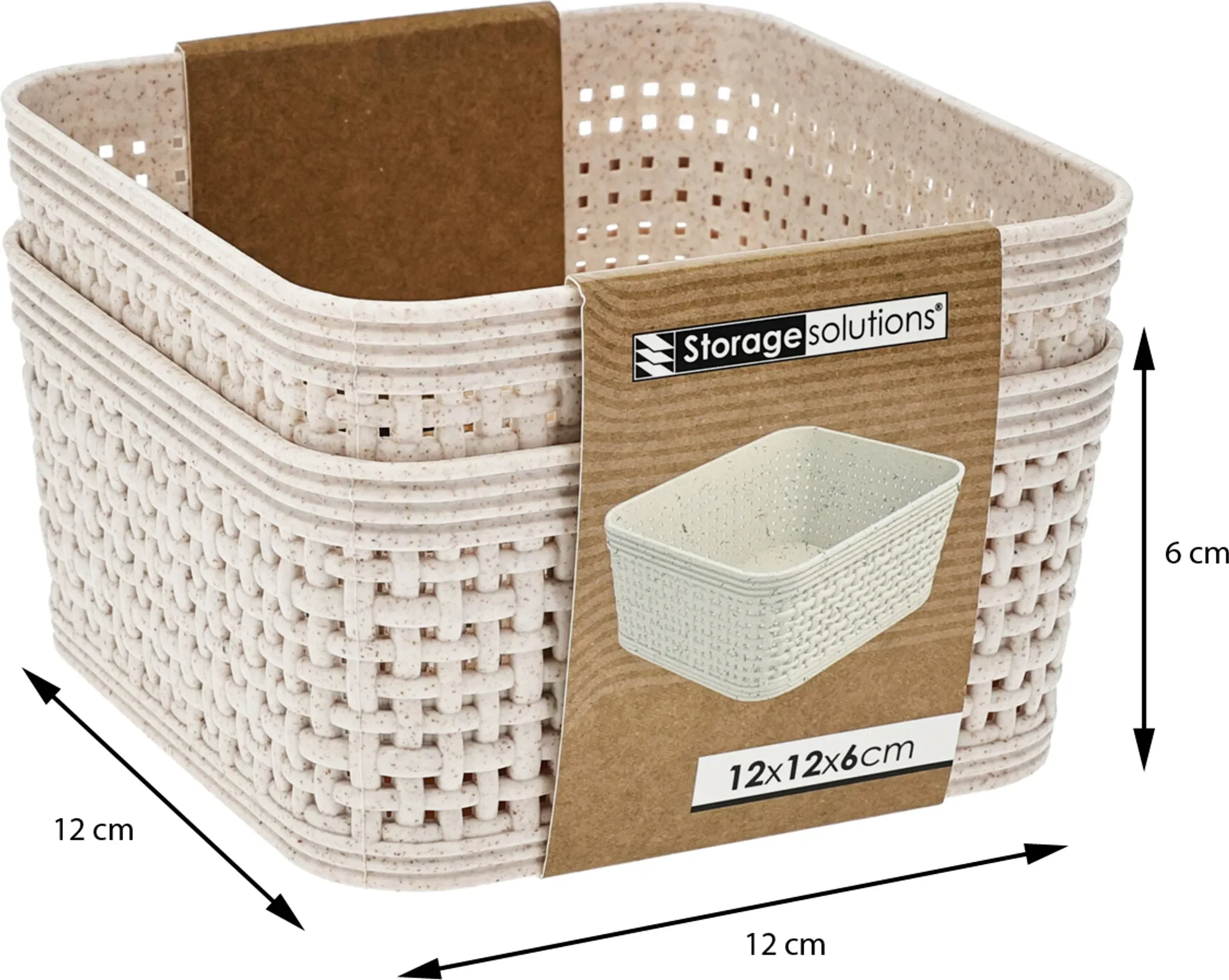 Die Aufbewahrungskörbe im 2er Set von Storage Solutions kombinieren elegantes Design mit praktischer Funktion. Mit den Maßen 12x12x6 cm passen sie optimal in Regale, Schränke oder auf Tische. Der geflochtene Look in Beige fügt sich harmonisch in jede Wohnlandschaft ein und sorgt für einen dekorativen Akzent.