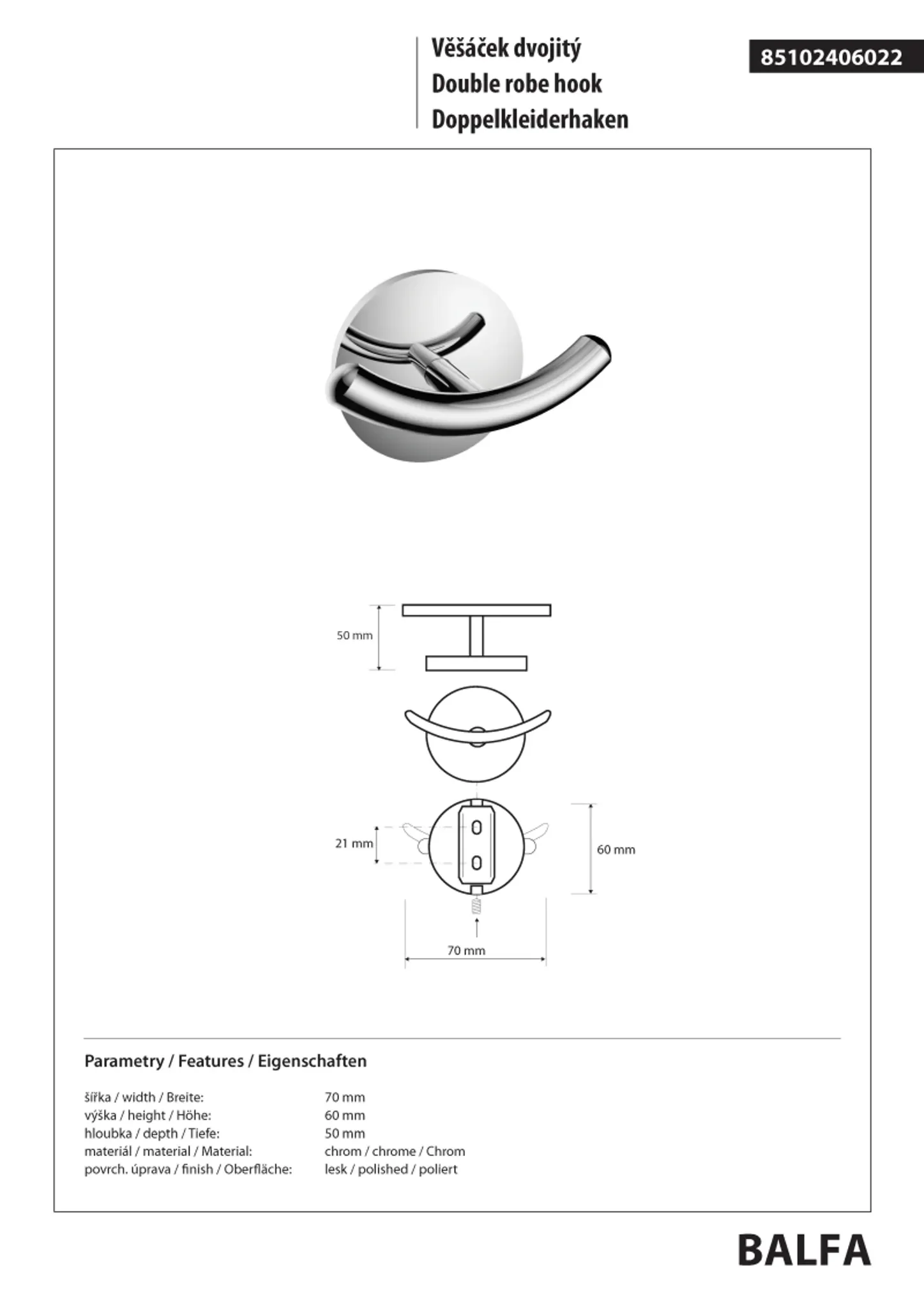 Produktinformationen "BALFA Doppelkleiderhaken Zink Chrom poliert"