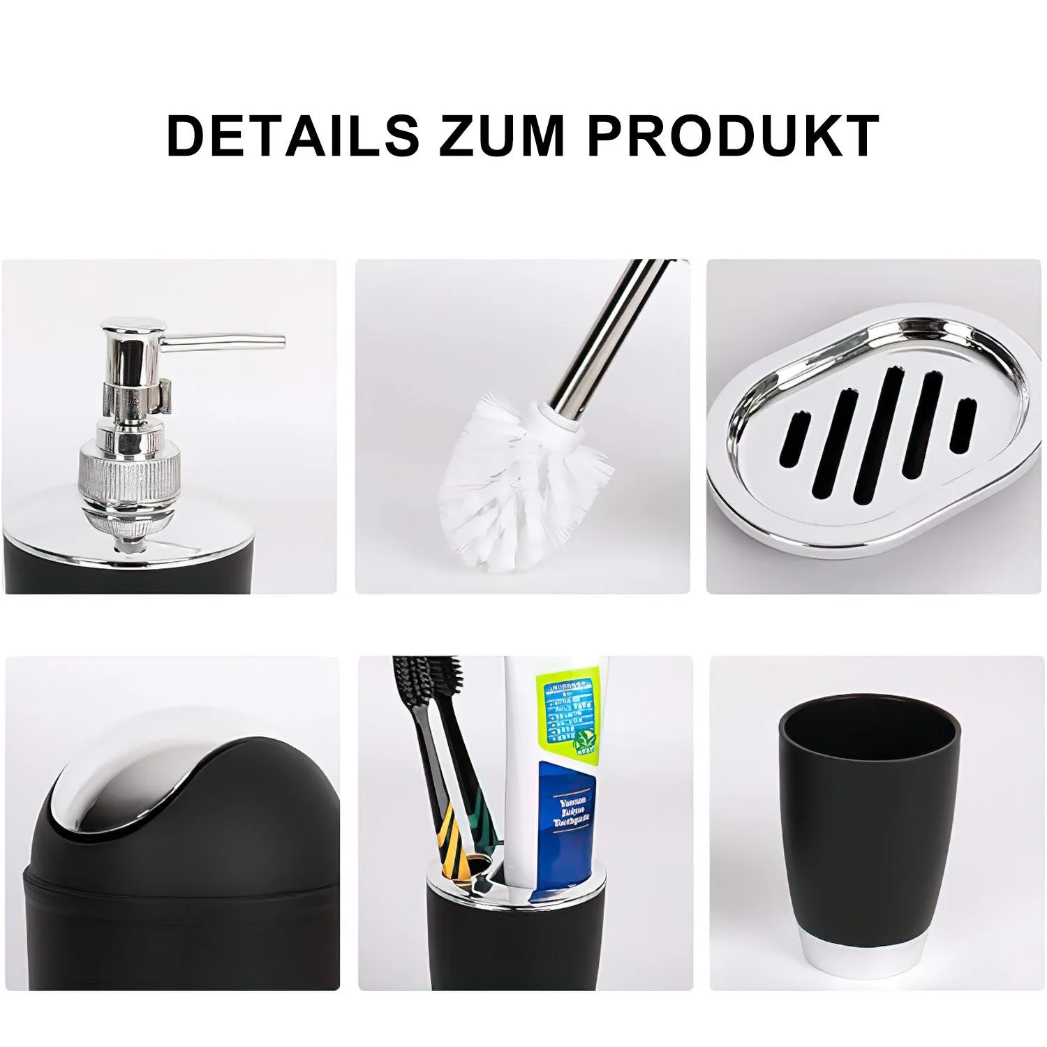 Seifenspender, Zahnputzbecher, Zahnbürstenhalter, Seifenschale, Klobürsten-Halter, Mülleimer