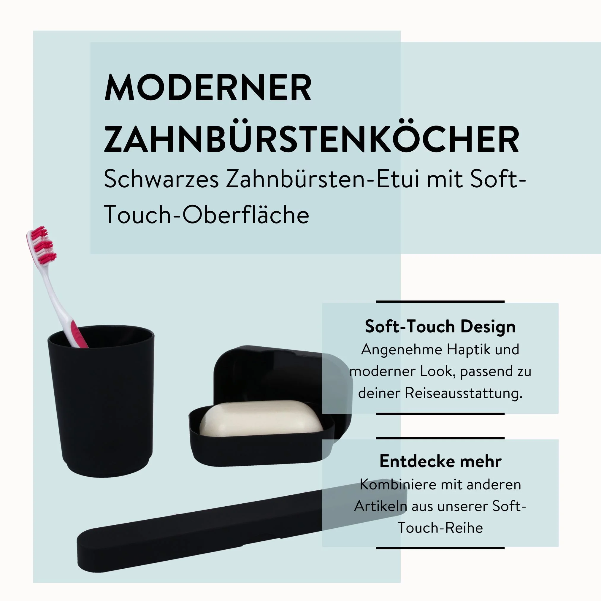 Zahnbürsten-Etui in modernem Soft-Touch Design – Schwarz