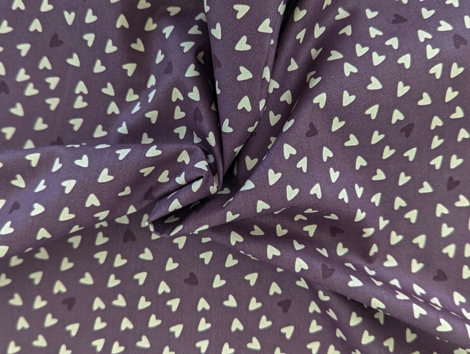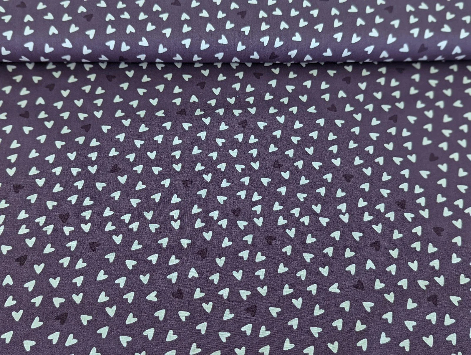 Stoff Meterware auf Lila, Herz-Motiv ca. 1 x 1 cm