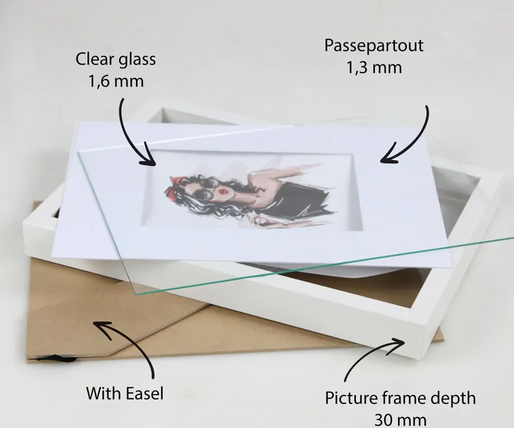 Eleganter MDF-Bilderrahmen mit Passepartout und Klarglas