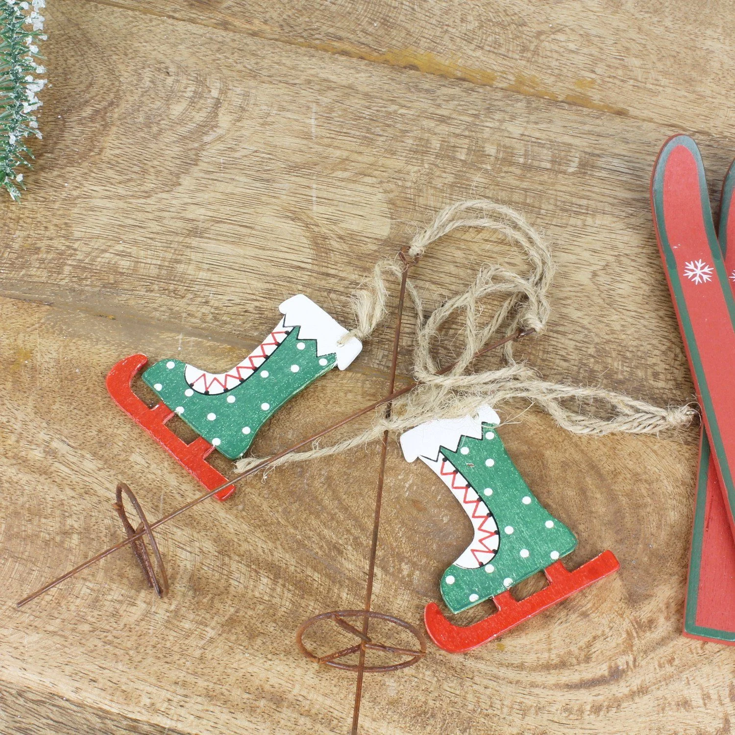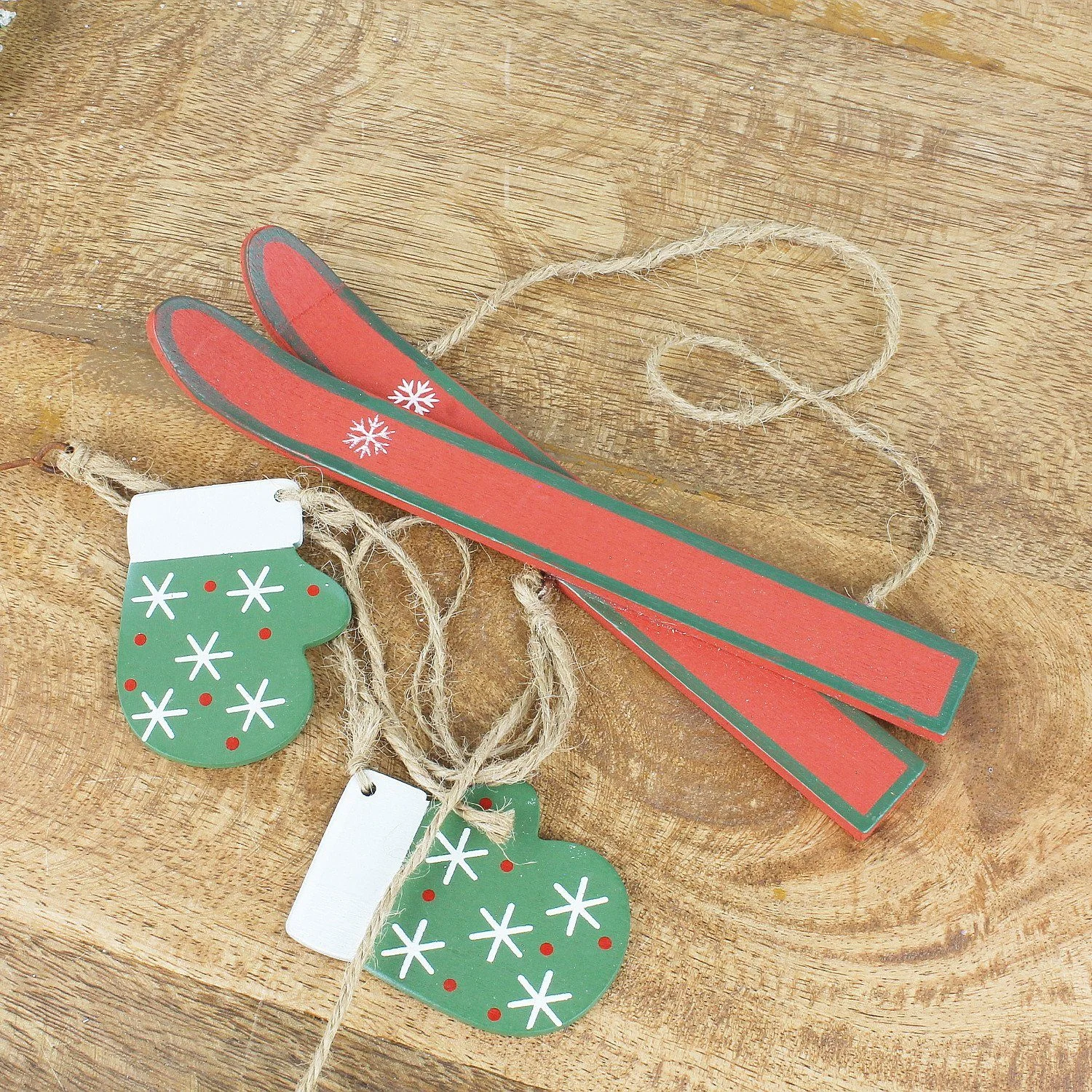 Bringen Sie winterliche Freude in Ihr Zuhause mit diesem liebevoll gestalteten 2er Set Holz-Dekohänger. Jeder Hänger ist mit Ski, Handschuhen oder Schlittschuhen dekoriert und besticht durch die klassischen Winterfarben Rot und Grün. Ideal für Türen, Fenster, Kränze, Wände oder kreative DIY-Projekte.