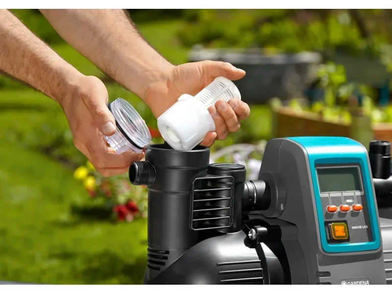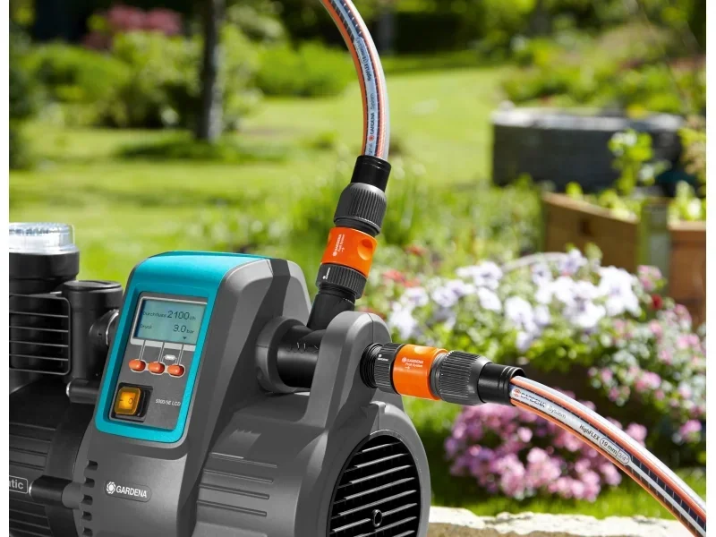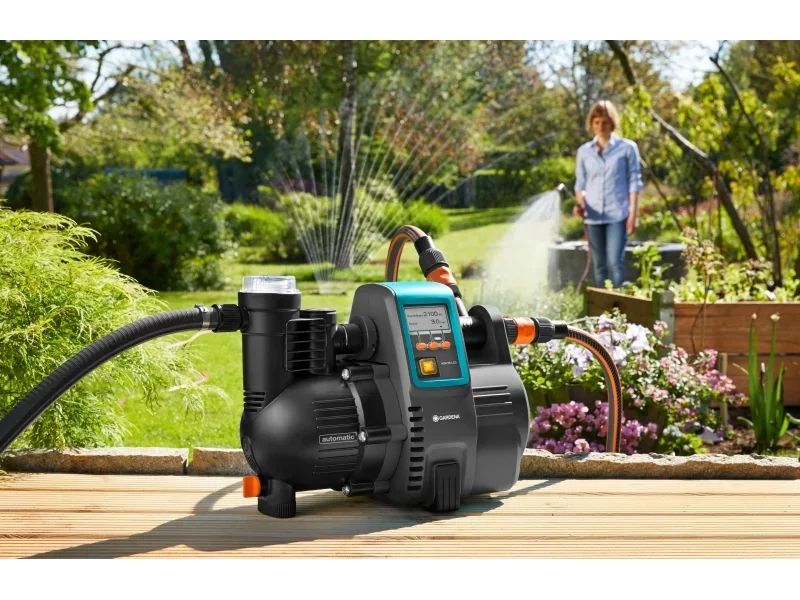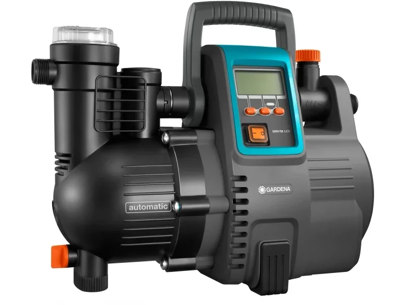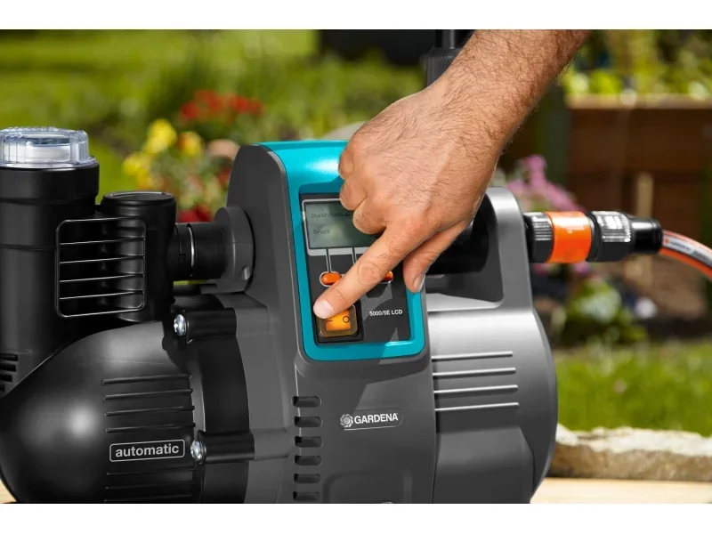 Der Haus- & Gartenautomat 5000/5 LCD ist eine elektronische Druckpumpe für die Nutzung von Regen- oder Brunnenwasser in Garten und Haushalt, etwa für Bewässerung, Toiletten oder Waschmaschinen. Die integrierte Elektronik startet die Pumpe bedarfsgerecht und schaltet sie nach Gebrauch automatisch ab. Ein großes MultiControl LC-Display zeigt Betriebs- und Sicherheitsfunktionen wie Druck oder Fördermenge an und unterstützt mit einem Fehlerdiagnosesystem. Dank wetterfestem Gehäuse kann die Pumpe während der Freiluftsaison im Außenbereich stehen. Sie ist für stationären und mobilen Einsatz geeignet und auf mittelgroße Häuser und Gärten ausgerichtet.