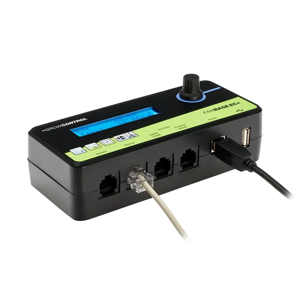 Der FanBase EC+ von GrowConrol ist ein Controller für EC-Ventilatoren, der das Raumklima in Indoor-Gewächshäusern zuverlässig stabilisiert. Er regelt Temperatur, Luftfeuchte und Unterdruck auf den gewünschten Wert und hilft so, Gerüche im Raum zu halten und das Pflanzenwachstum zu unterstützen. Dank durchdachter Regelalgorithmen und einem übersichtlichen Menü lässt sich das System präzise an die Bedürfnisse anpassen.