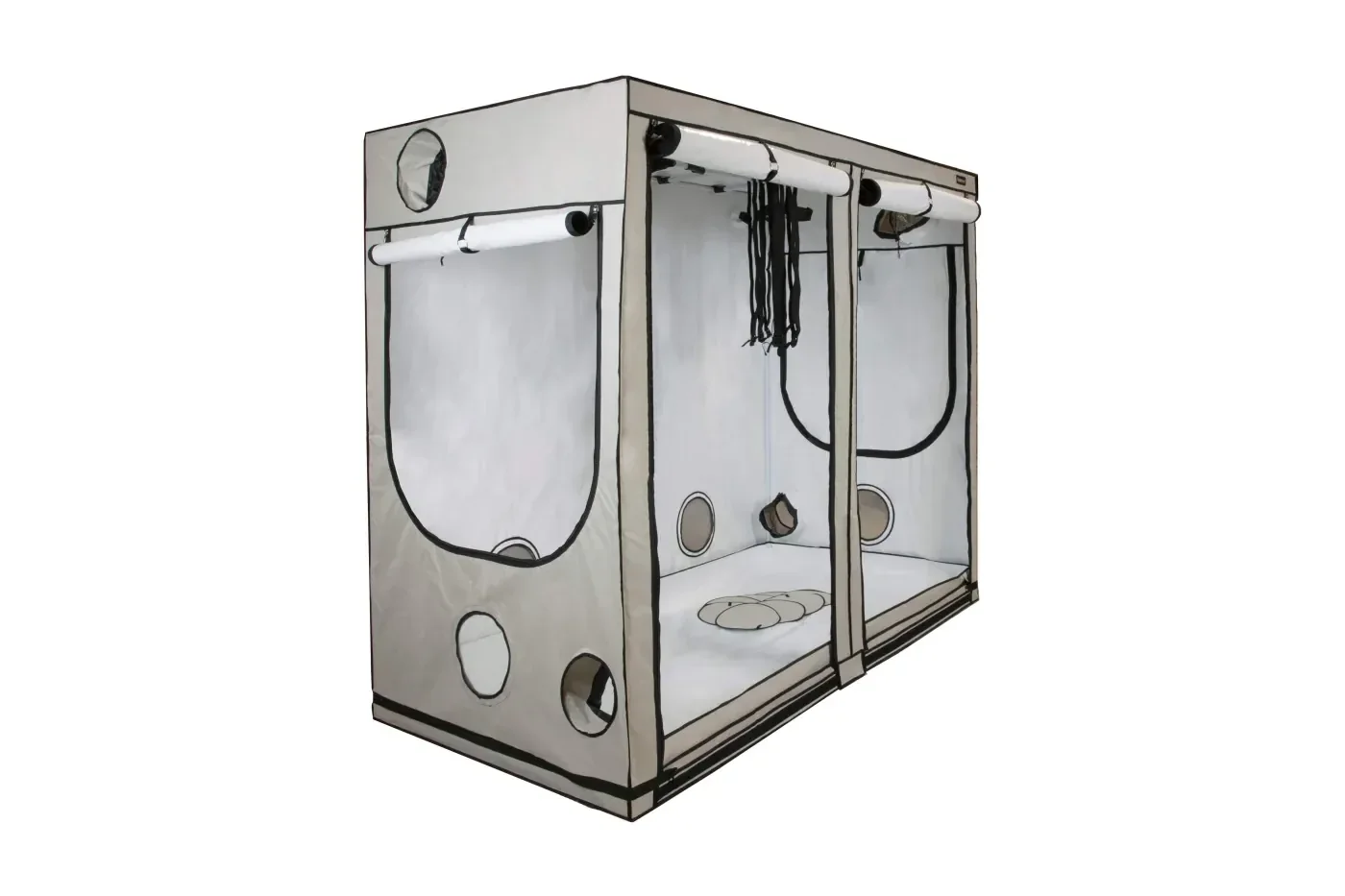 Die Homebox Ambient R240 richtet sich an ambitionierte Grower, die stabile Rahmenkonstruktion, präzise Luftführung und effiziente Lichtreflexion in einem XL-Growzelt vereinen wollen. Sie ist kompatibel mit Setups für zwei bis drei LEDs und lässt sich beispielsweise mit zwei Mars Hydro FC-E4800 oder ähnlichen Systemen betreiben. Durch das durchdachte Öffnungs- und Belüftungskonzept entsteht ein kontrolliertes Mikroklima – ideal für großflächige Indoor-Kulturen mit komfortablem Zugriff und hoher Betriebssicherheit.