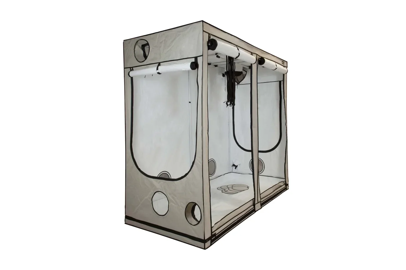 Die R240+ ist ein robustes Pflanzenzelt für den Indoor-Anbau, ausgelegt für starke Beleuchtungs-Setups und effizientes Wärmemanagement. Sie nimmt zwei oder sogar drei 600-W-Leuchten auf, während das superstabile 22‑mm-Rahmengestänge hohe Lasten sicher trägt. Die optimal reflektierende PAR+ Innenbeschichtung unterstützt schnelleres Wachstum und bessere Erträge, indem sie nutzbares Licht maximiert und Strahlungswärme effektiv ableitet.