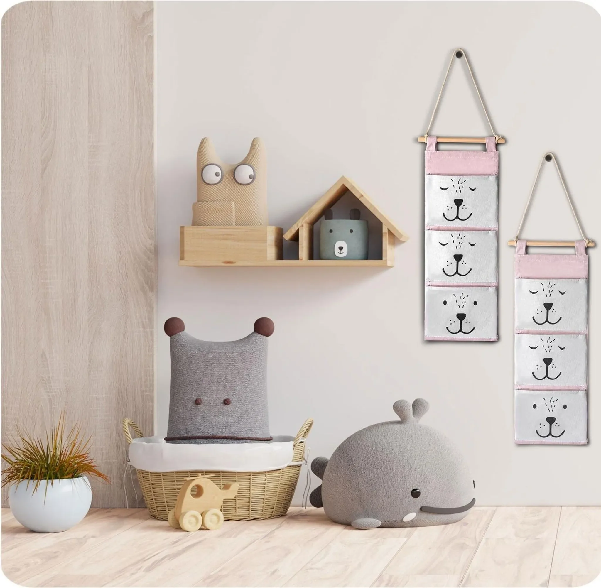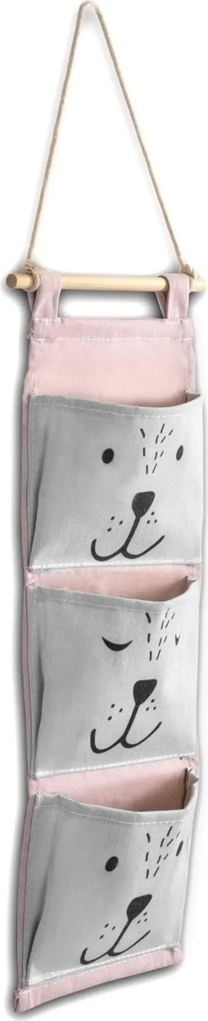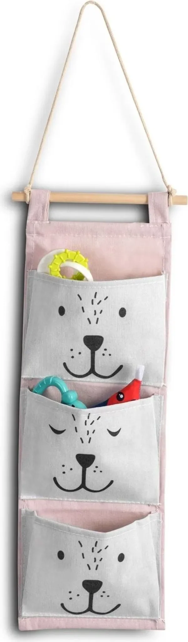 Der hängende Spielzeug-Organizer „Nukido“ in Pink bietet eine praktische und dekorative Lösung, um Ordnung im Kinderzimmer zu schaffen. Mit drei geräumigen Taschen und einem fröhlichen Bärenmotiv unterstützt er Kinder spielerisch dabei, ihre Spielsachen, Bücher oder Accessoires ordentlich zu verstauen.