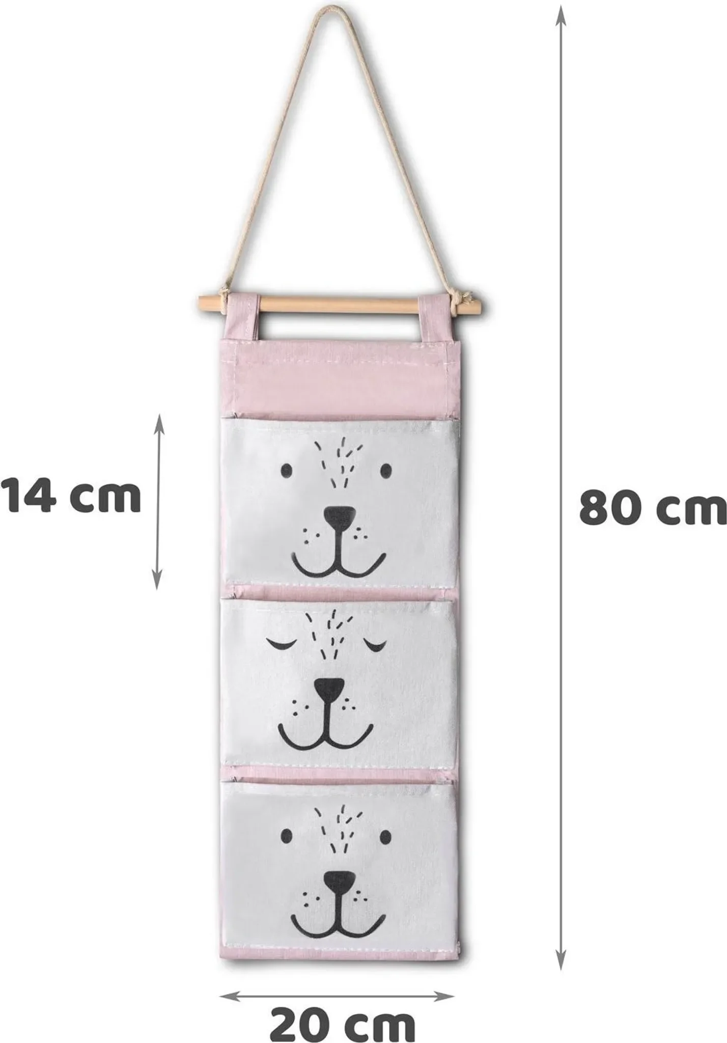 Highlights: Niedliches Bärenmotiv, hochwertiges Baumwollmaterial, platzsparend aufzuhängen, langlebige Verarbeitung, hilft Kindern spielerisch beim Aufräumen.