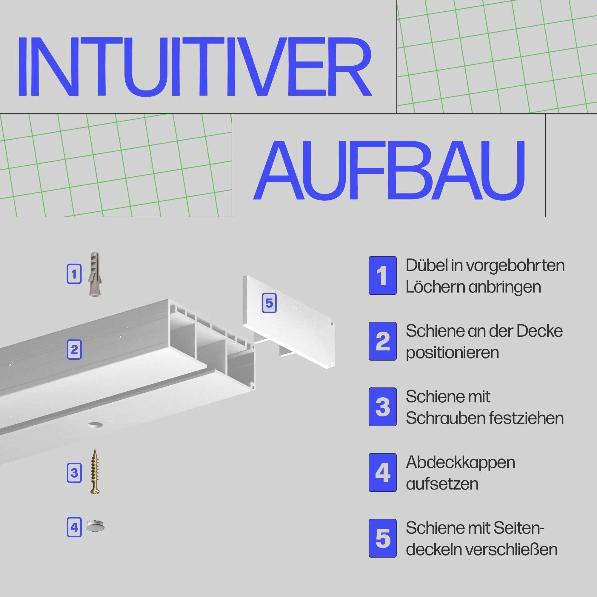 Die Bestlivings Innenlaufschiene bietet eine hochwertige, langlebige Lösung für Ihre Fensterdekoration. Sie eignet sich für Schiebegardinen, Stores, Dekoschals, Verdunkelungsvorhänge oder als Raumteiler. Die Schiene ist aus robustem Kunststoff gefertigt, leicht zu reinigen und sorgt dank der glatt gearbeiteten Innenläufe für geräuscharmes Gleiten handelsüblicher Gardinenröllchen (Ø ca. 8 mm).