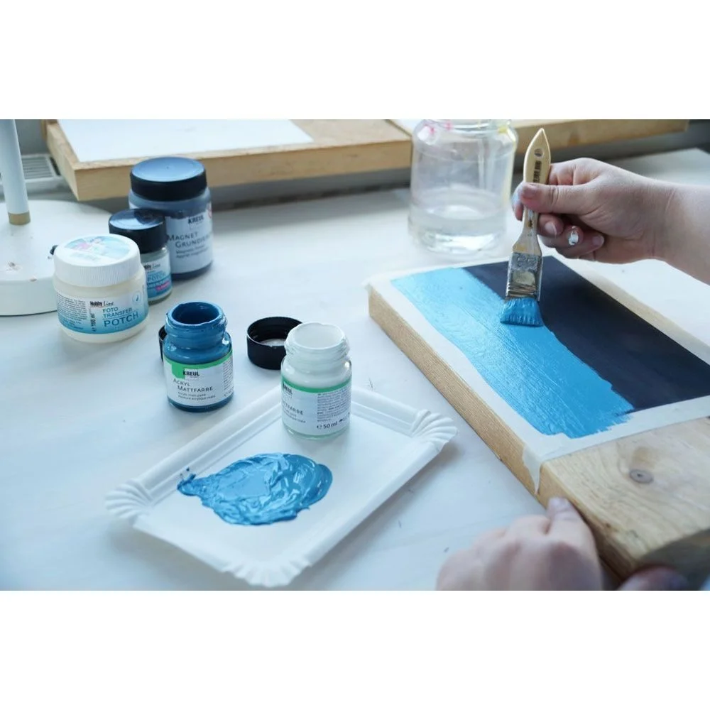 Die KREUL Acryl Mattfarbe in Stahlblau wird in einem 20 ml Glas geliefert. Sie eignet sich für verschiedene Materialien wie Pappe, Karton, Stein, Terrakotta, Ton und Modelliermasse. Ideal für kreative Malprojekte im Innen- und Außenbereich.