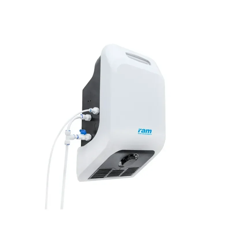 Der RAM Luftbefeuchter zur Wandmontage ist für größere Räume konzipiert und schafft ein bedarfsgerechtes Raumklima, ohne Stellfläche zu blockieren. Dank Direktanschluss an die Wasserleitung arbeitet er kontinuierlich ohne Tanknachfüllen und lässt sich präzise über einen Drehregler steuern.