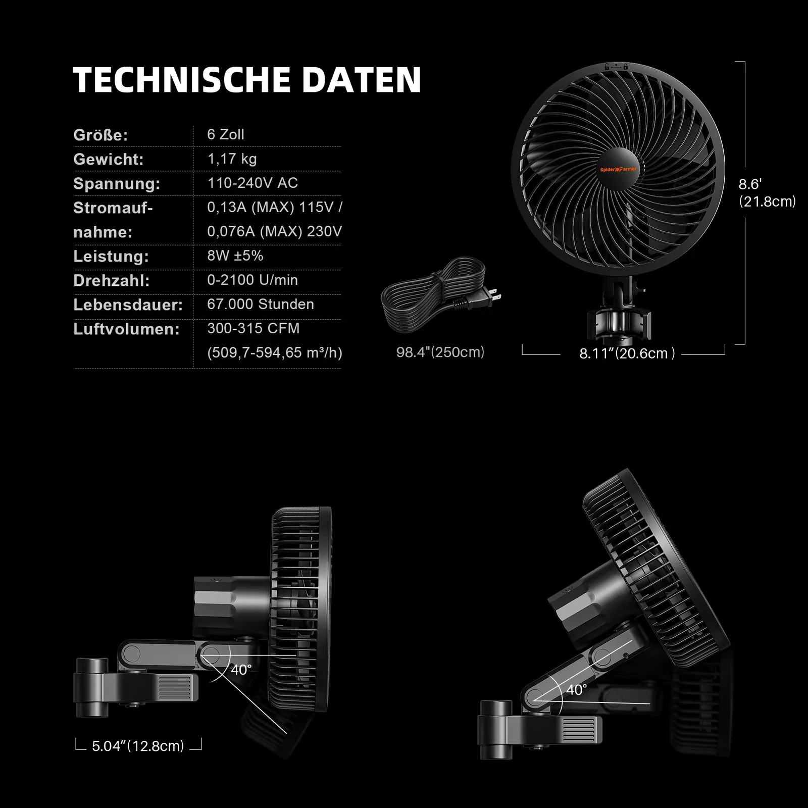 Produktinformationen "Spider Farmer - 6-Zoll Clip-Lüfter 2er Pack EC-Motor IP54 Growbox"