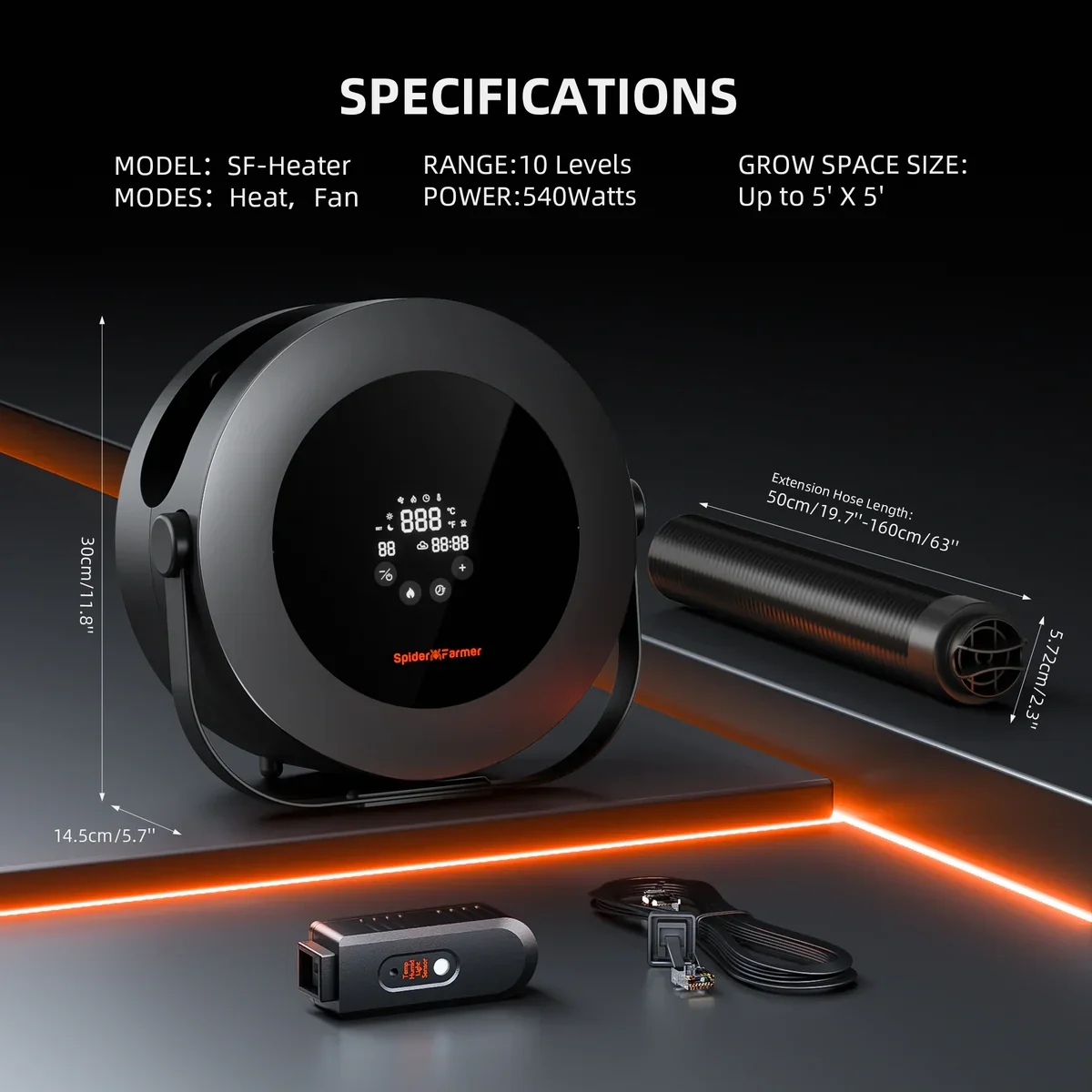 Produktinformationen "Spider Farmer - Heizlüfter 540 W mit 10 Stufen, leise und kompakt"