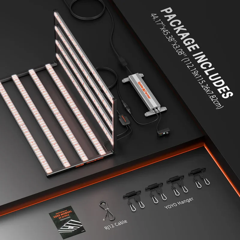 - Maximale Lichtausbeute: 2940 µmol/s PPF für lichtintensive Kulturen.