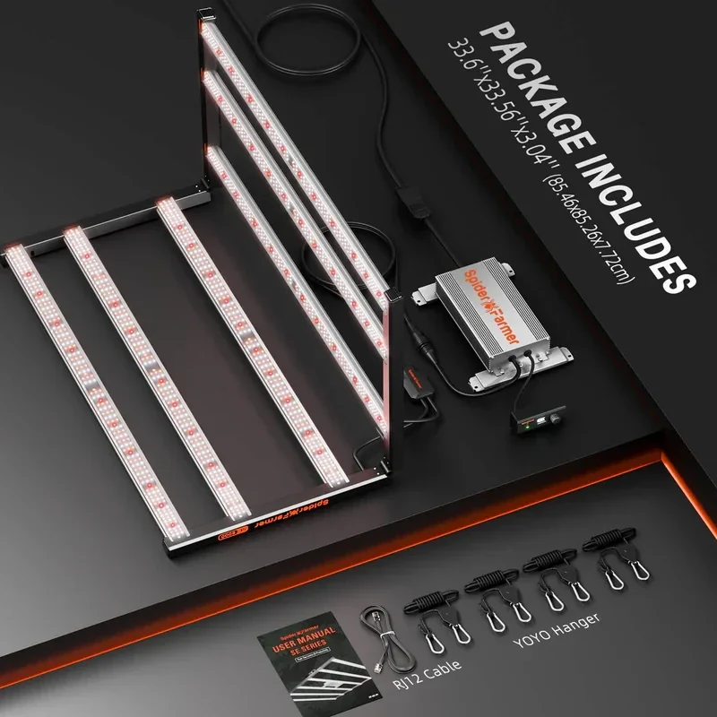 - Komfortable Steuerung: Zeitpläne, Dimmen und Zyklus-Anpassung über die Spider Farmer App.