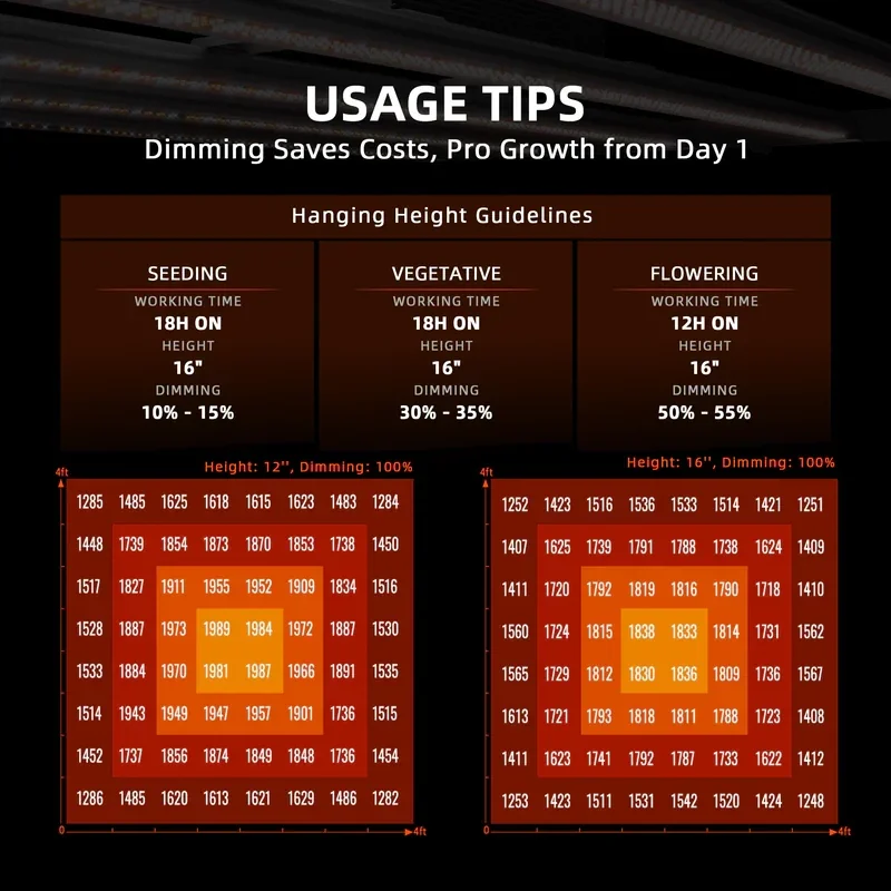 - Hohe Lichtleistung: PPF von 2146 µmol/s für intensive Beleuchtung in großen Setups.